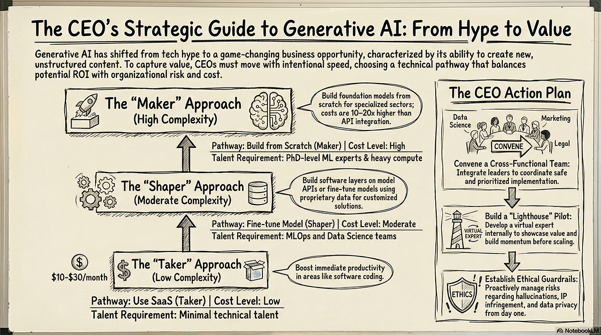 Style: Clean executive summary. Use large, bold typography for